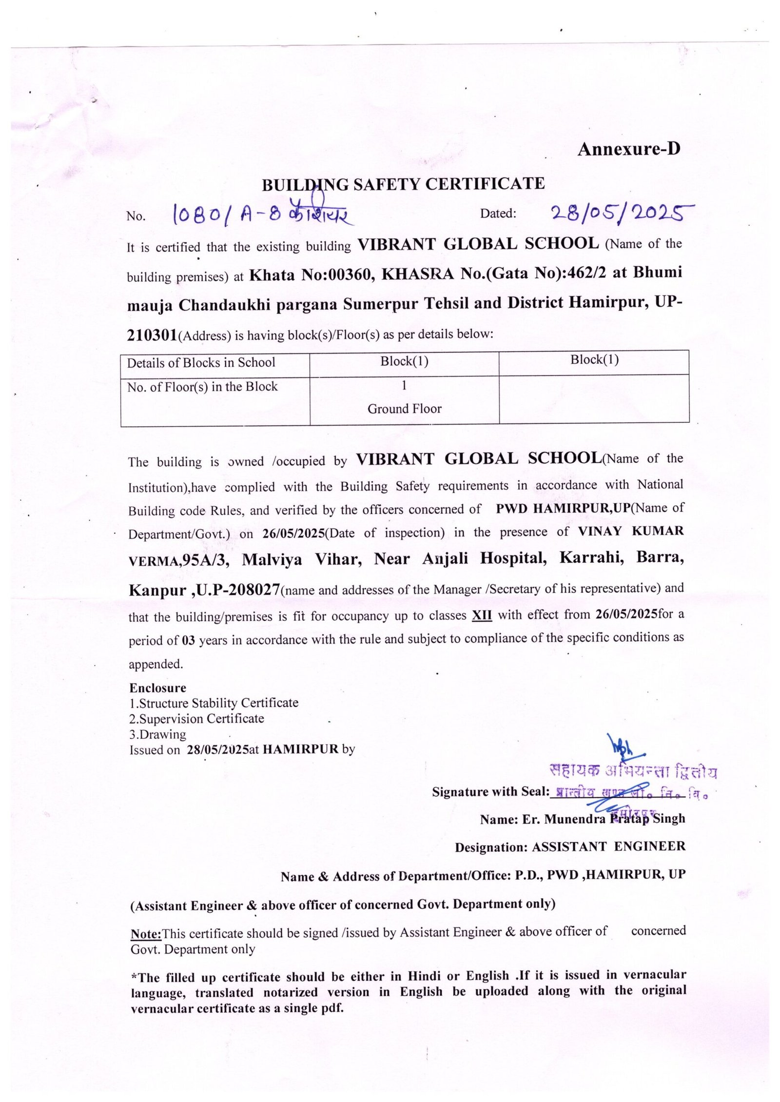 BUILDING SAFETY CERTIFICATE